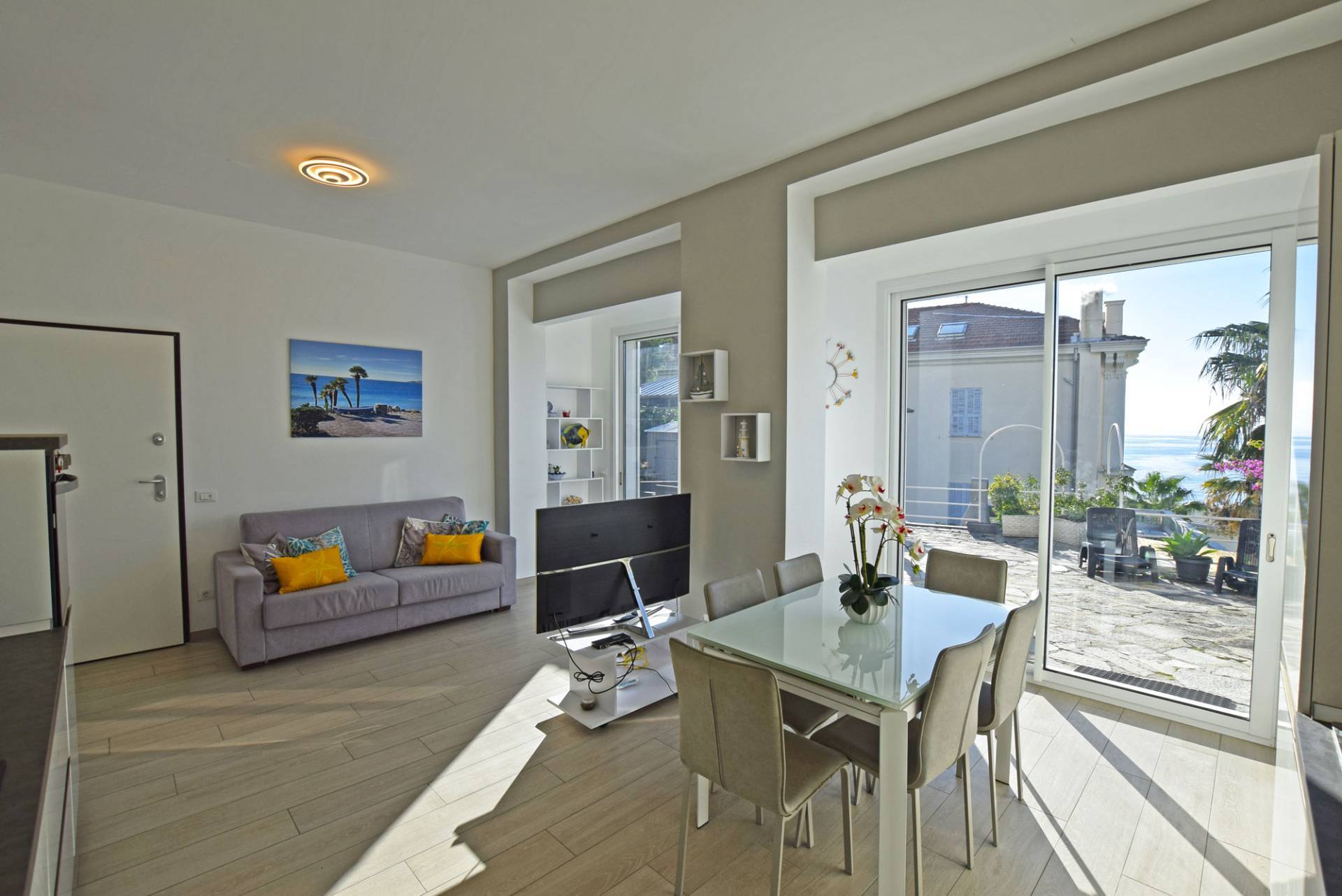 Elegant apartment in a villa in the center of Ospedaletti, with large terrace and sea view.Located close to all amenities and beaches, elegant apartment in a villa with large terrace and sea view, in an exclusive residential setting consisting of only three apartments. A charming solution, ideal for those who want to live in the center without sacrificing tranquility and privacy. The apartment for sale, completely renovated and tastefully furnished, stands out for its well-appointed and well-organized rooms. The property consists of a bright living room with open kitchen, a double bedroom with en-suite bathroom, a second bedroom, and an additional bathroom. The large terrace is a real added bonus, offering pleasant views of the sea and the city, perfect for relaxing outdoors in any season. Parking space.This house for sale is located in a particularly discreet neighborhood, surrounded by elegant early 20th-century buildings, which give the area a refined and timeless atmosphere, while still being right in the city center.Ospedaletti is a charming seaside town on the Italian Riviera, appreciated for its mild year-round climate and relaxed atmosphere. The property is around 50 minutes from Nice International Airport and benefits from direct access to the longest coastal cycle path in Europe, which links Ospedaletti to Sanremo and Imperia - ideal for walking, cycling and enjoying the seaside.