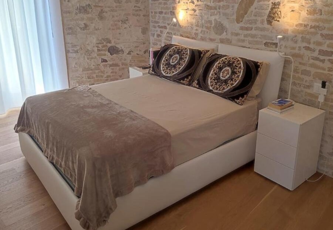 Fantastisk renoverad historisk 3-rumslägenhet med stor terrass i Atessas historiska centrum till salu. Lägenheten är en del av ett 1800-talskomplex som totalrenoverades och renoverades år 2020, vilket har blottat den gamla stenen och tegelväggarna i vissa rum. Lägenheten är belägen på andra våningen. Kontakta oss för att köpa lägenhet i Abruzzo. Vi har ett stort utbud av lägenheter, hus och tomter i hela Abruzzo.