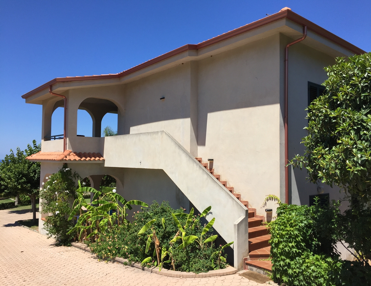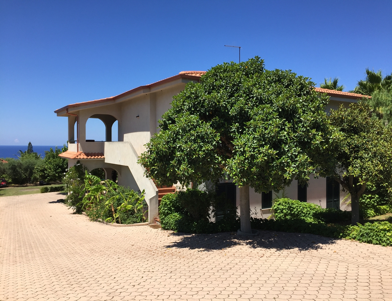 3-rumslägenhet med täckt terrass och fin havsutsikt belägen med ett lugnt läge nära byarna Santa Maria och Ricadi. Ett vackert område med palmer, bananplantor, citron- och apelsinträd. Deetta fantastiska komplex har en stor gemensam pool med separat jacuzzi och en barnpool. Det finns också en beachvolleyplan för de som vill ha lite motion. De omfattande och vackert anlagda trädgårdarna gör residentet idealiskt för familjer och vänner i alla åldrar. Med parkering på området. Denna lägenhet har hyrts ut extremt bra under de senaste åren och genererat en avkastning på upp till 6 % per år. Kontakta oss för att köpa lägenhet i Kalabrien, Vi har ett stort utbud av lägenheter, hus och tomter i Kalabrien.