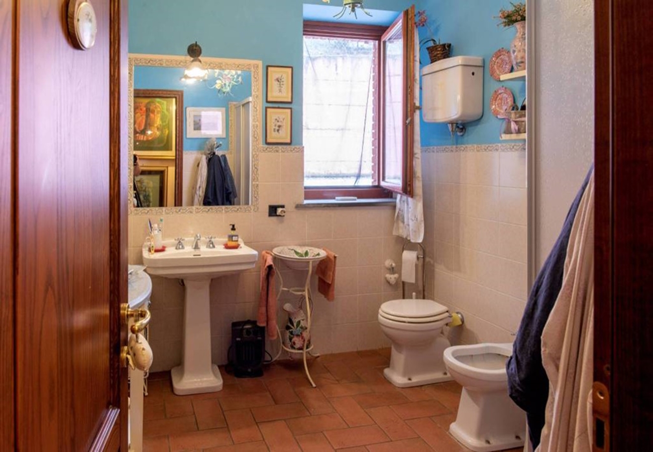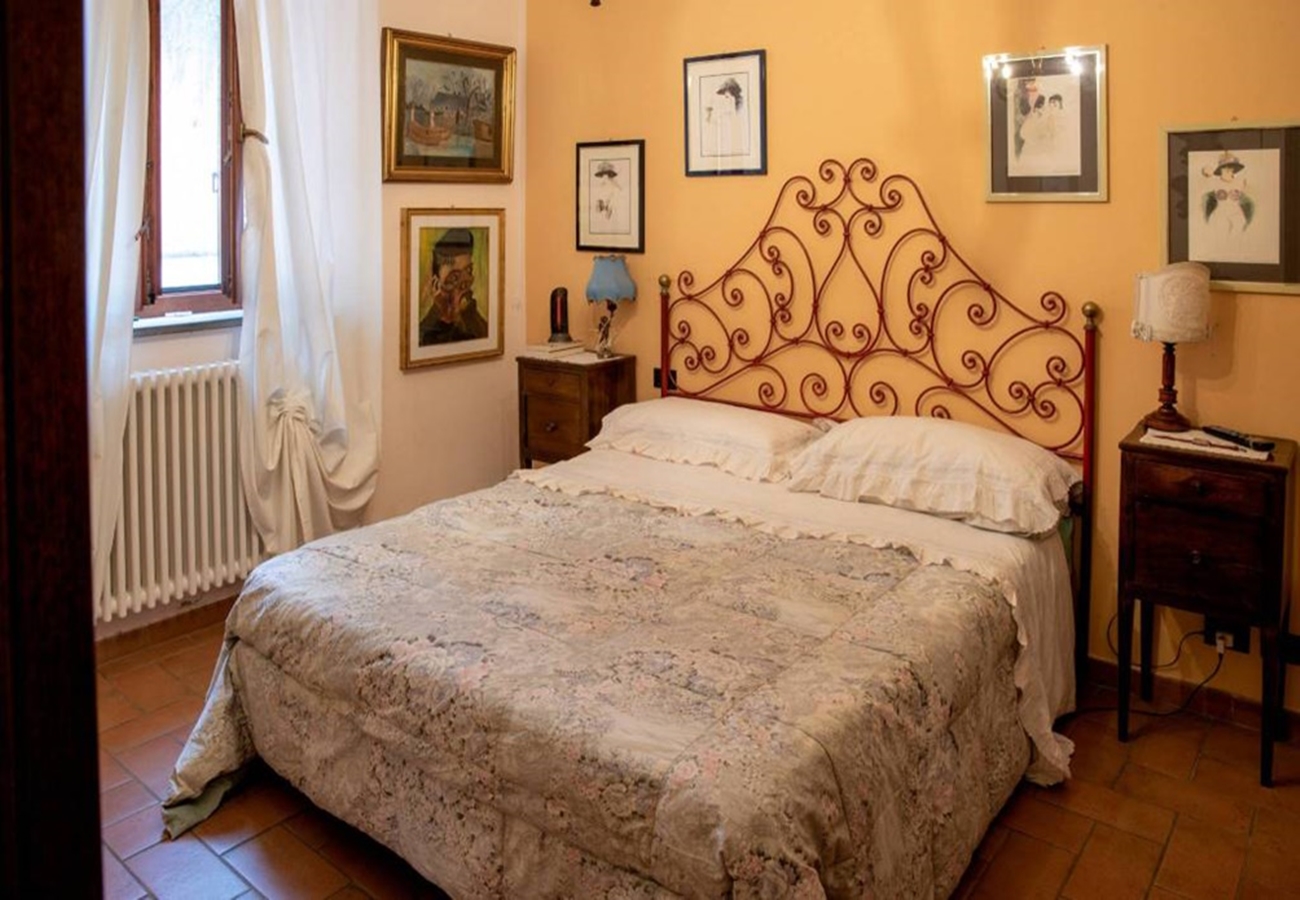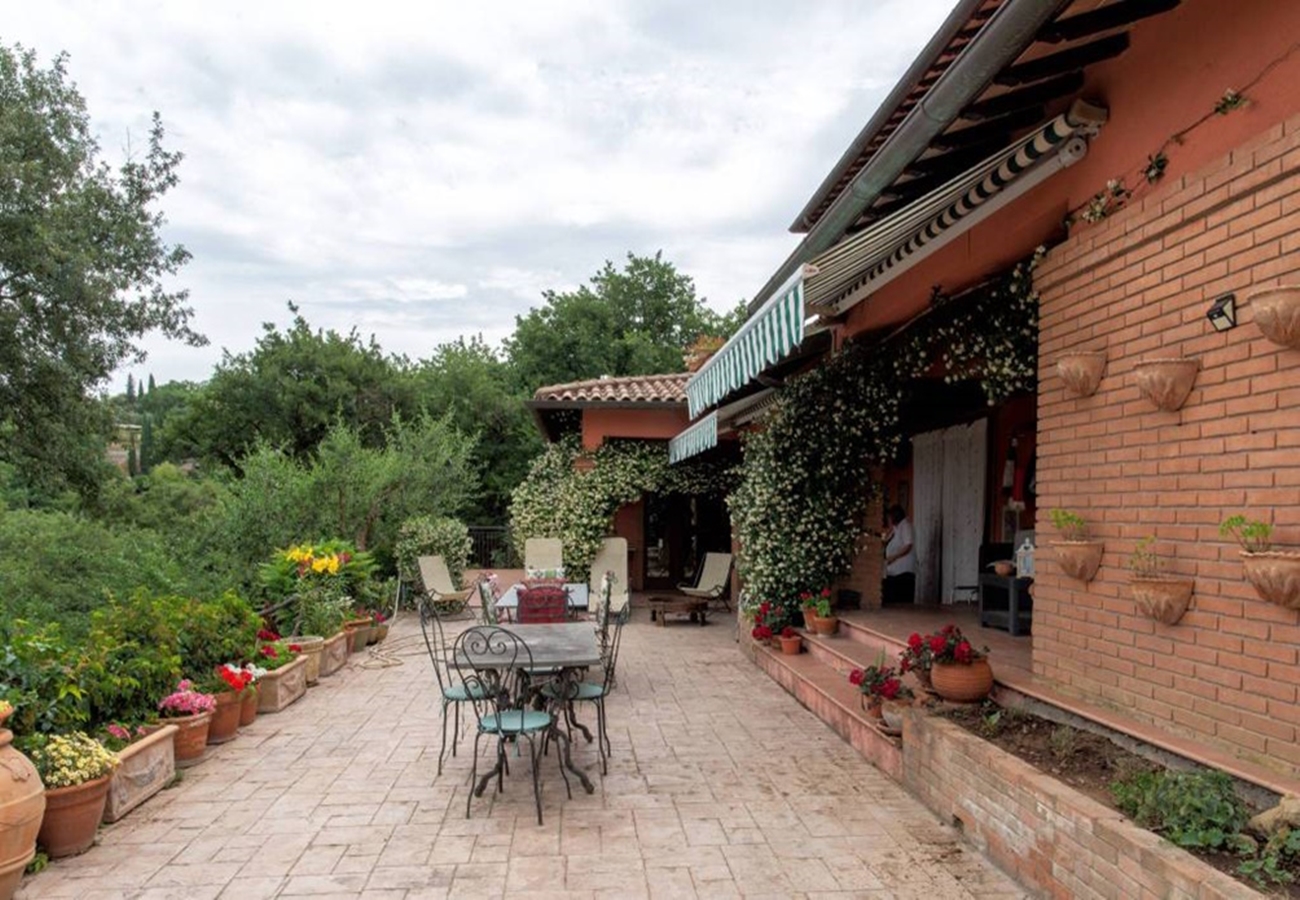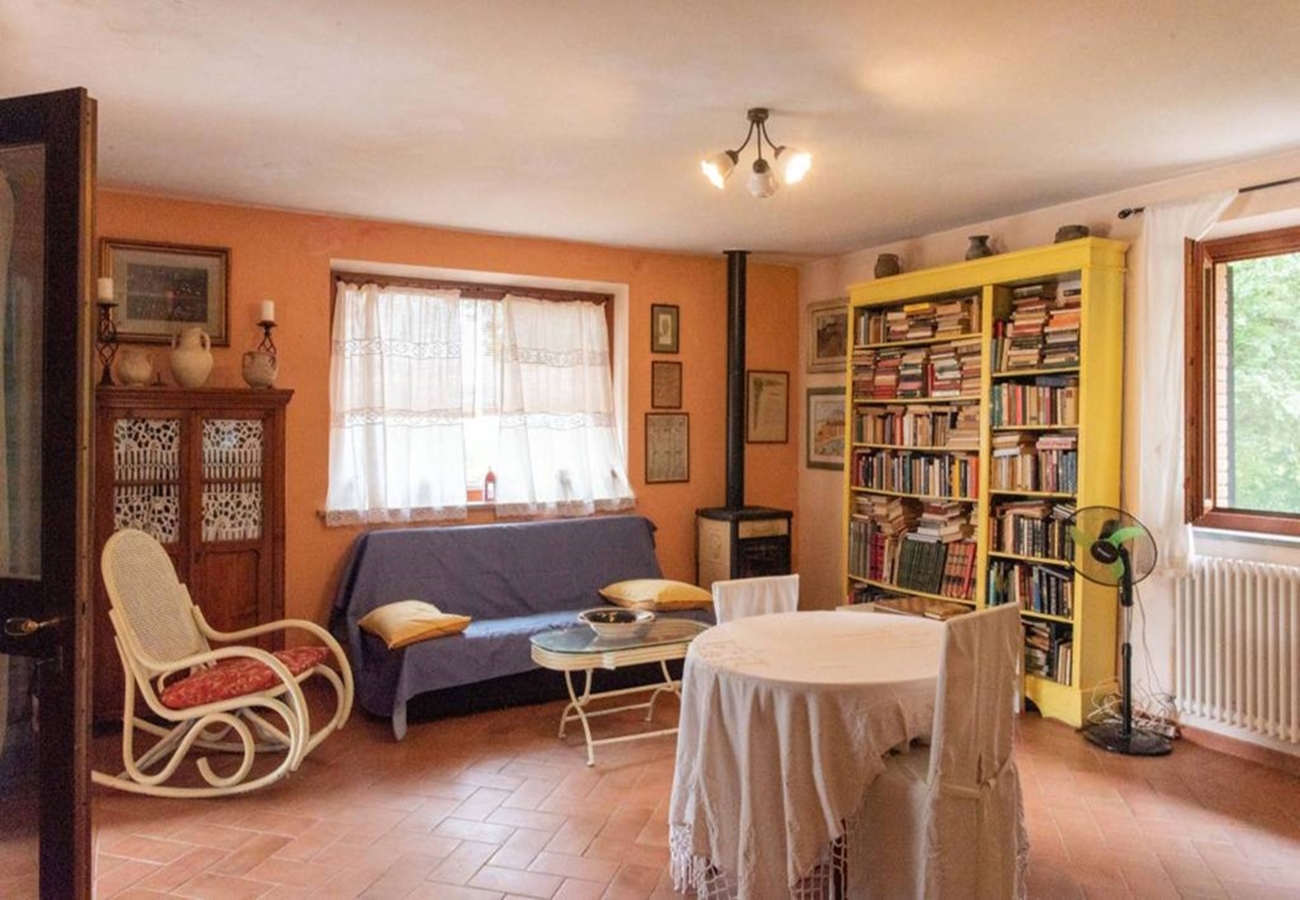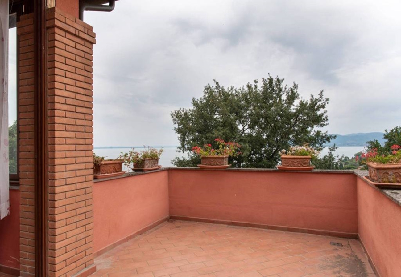 Fin villa med pool med sjöutsikt till salu i San Savino. Villan har stor mark, trädgård med pool och en underbar utsikt över Trasimenosjön och dess öar.