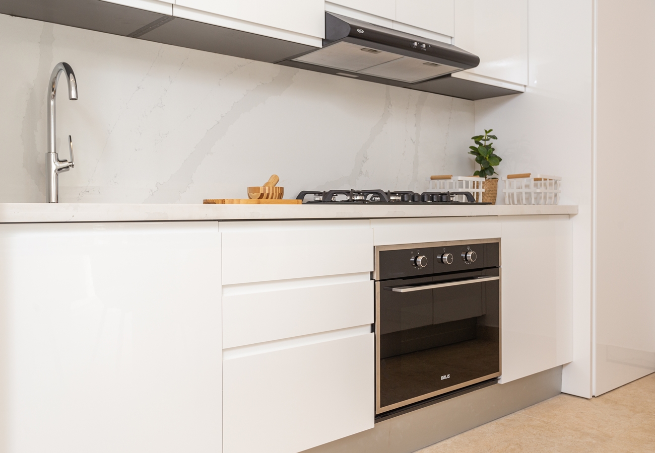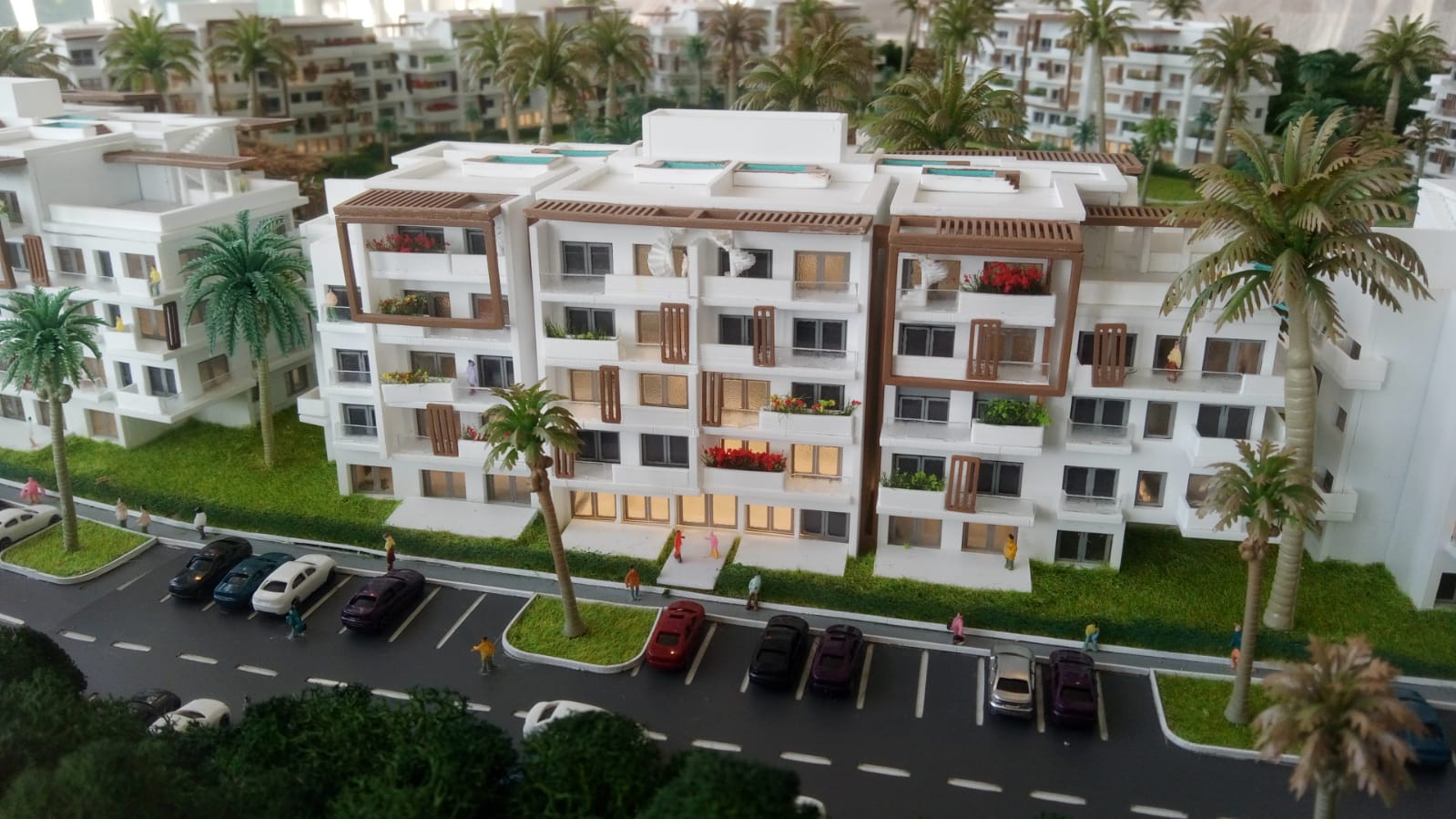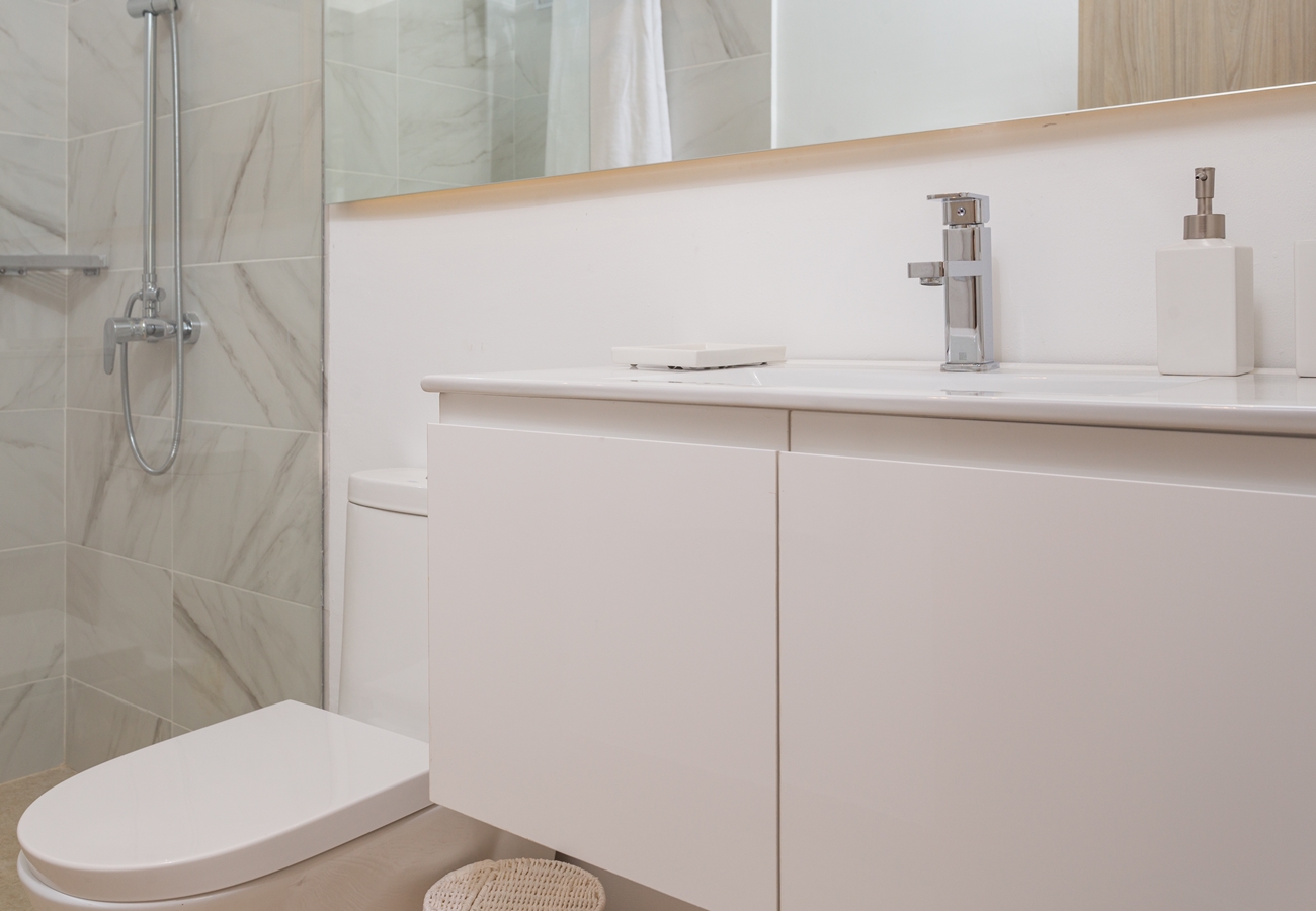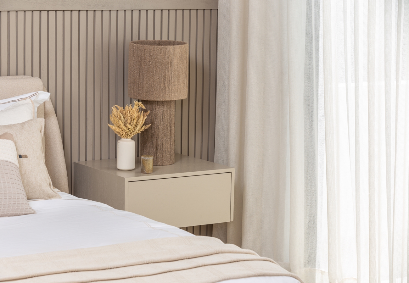 - 3-rumslägenheter med entréhall, fullt utrustat kök med alla köksmaskiner,, vardagsrum och matsal med A/C och access till rymlig terrass och två sovrum med A/C, fullt utrustade 2 helkaklade badrum, samt gästtoalett