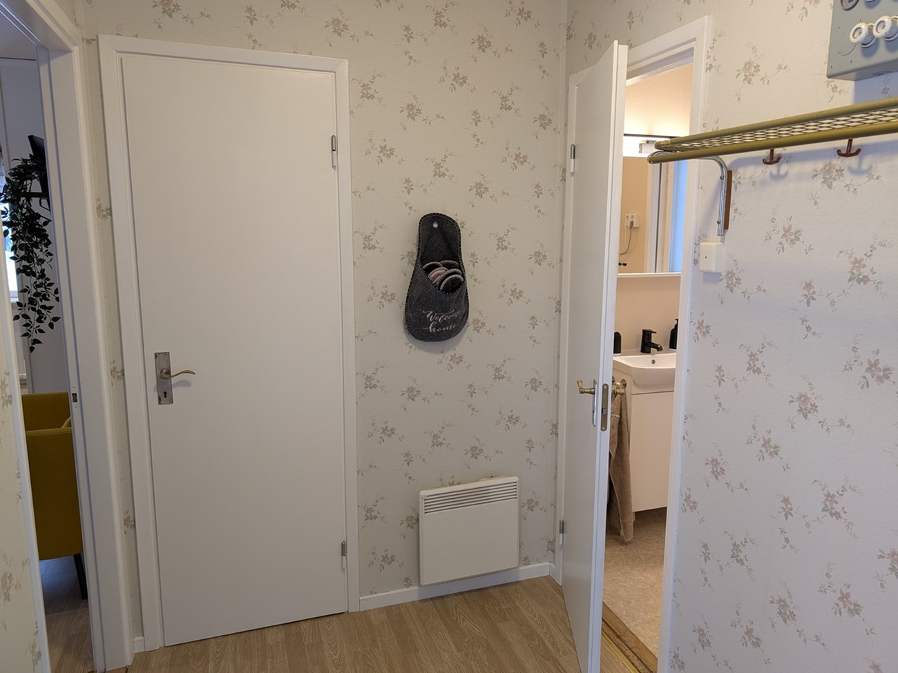 Entréhall och ett invändigt förråd. Utvändigt förråd om ca. 4 m2 i direkt anslutning till entrén.