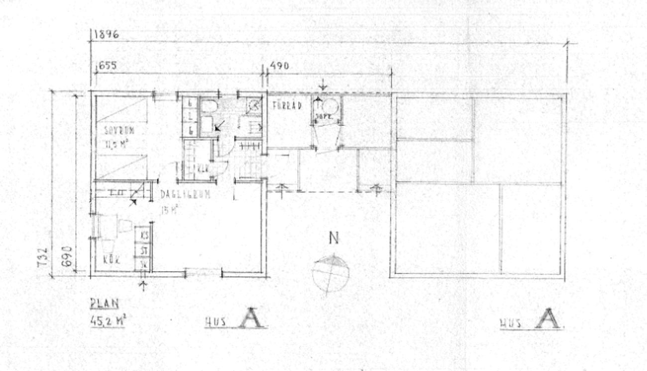 - Hus om 45 m2 boarea, 2 rum och kök, kök och vardagsrum i öppen planlösning. Ett sovrum, samt ett badrum med tvättmaskin och dusch.